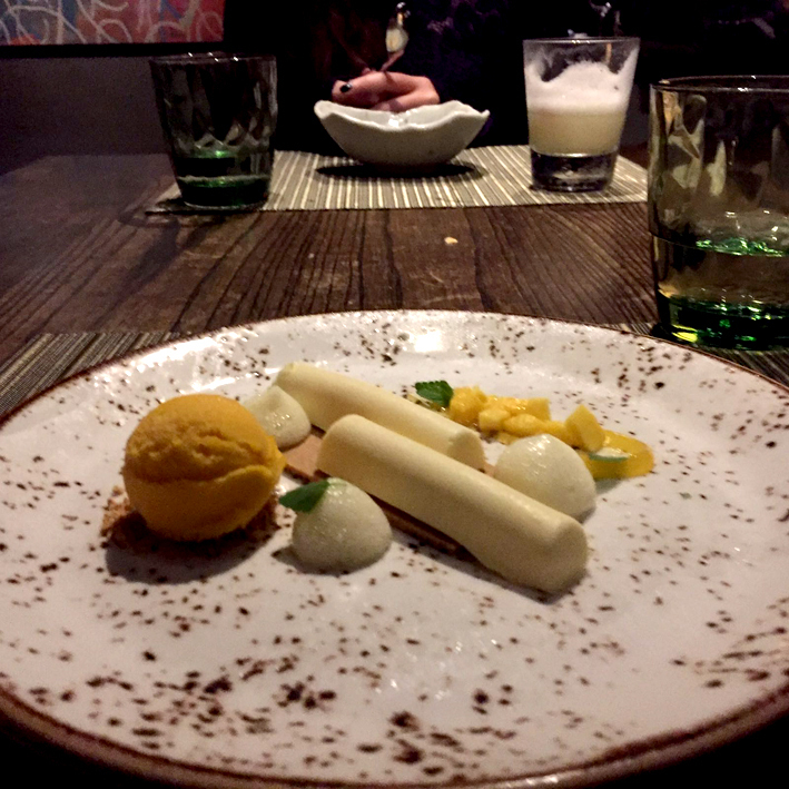 - Peruvian dark chocolate cake lucuma mousse, orange caramel